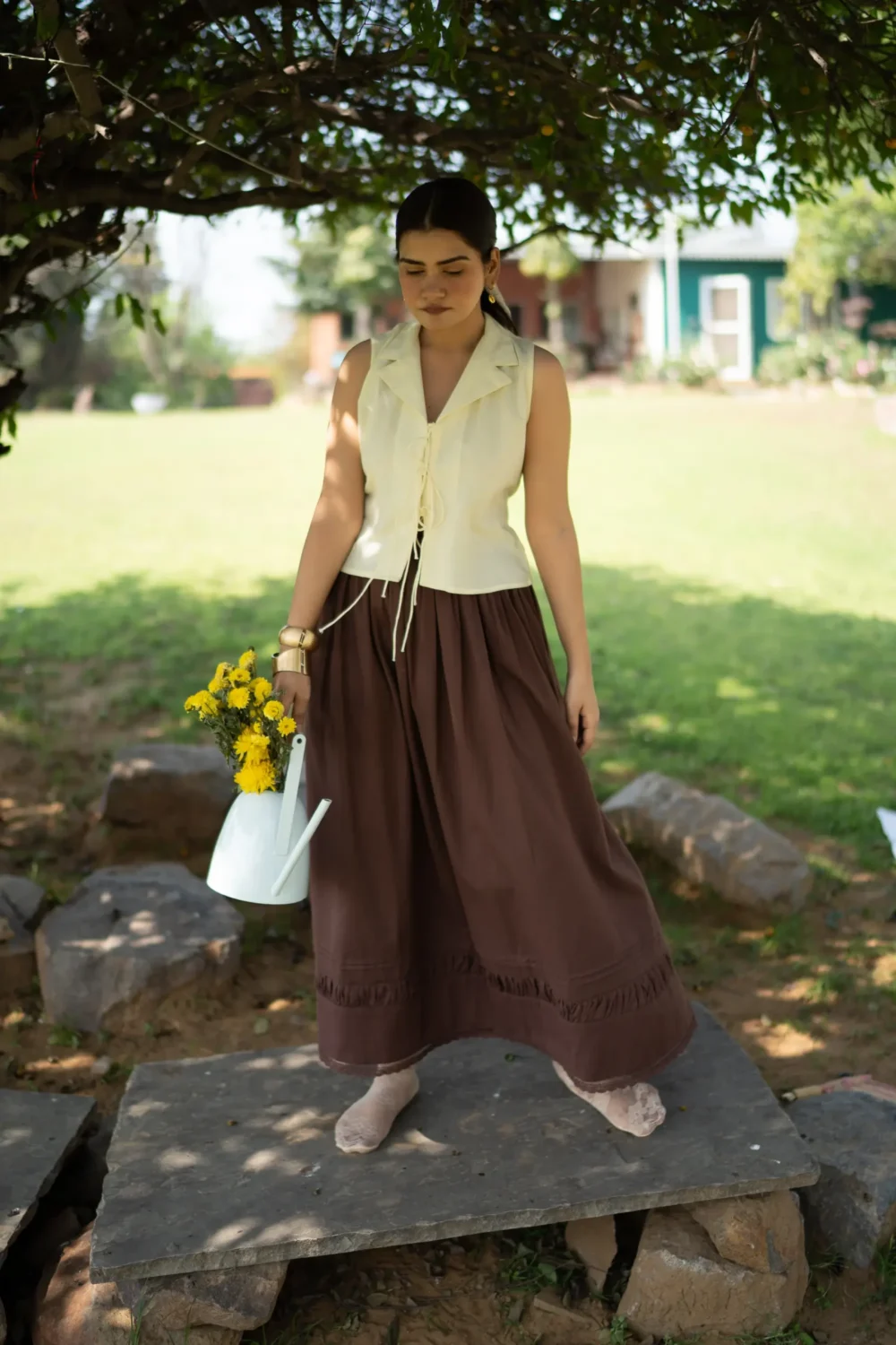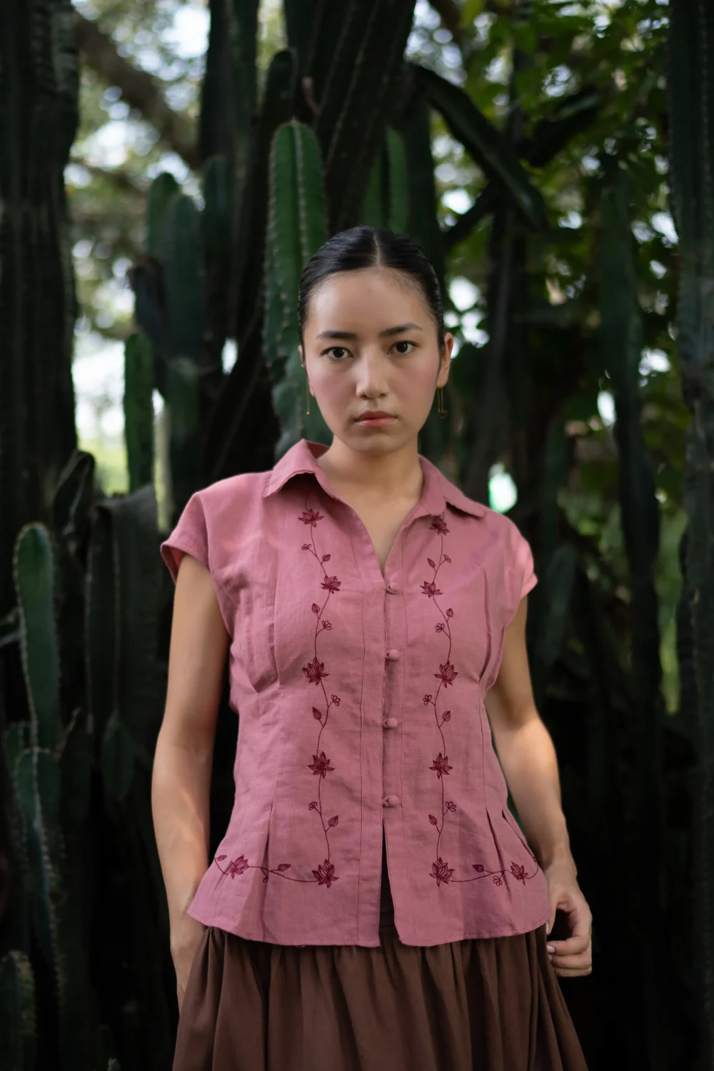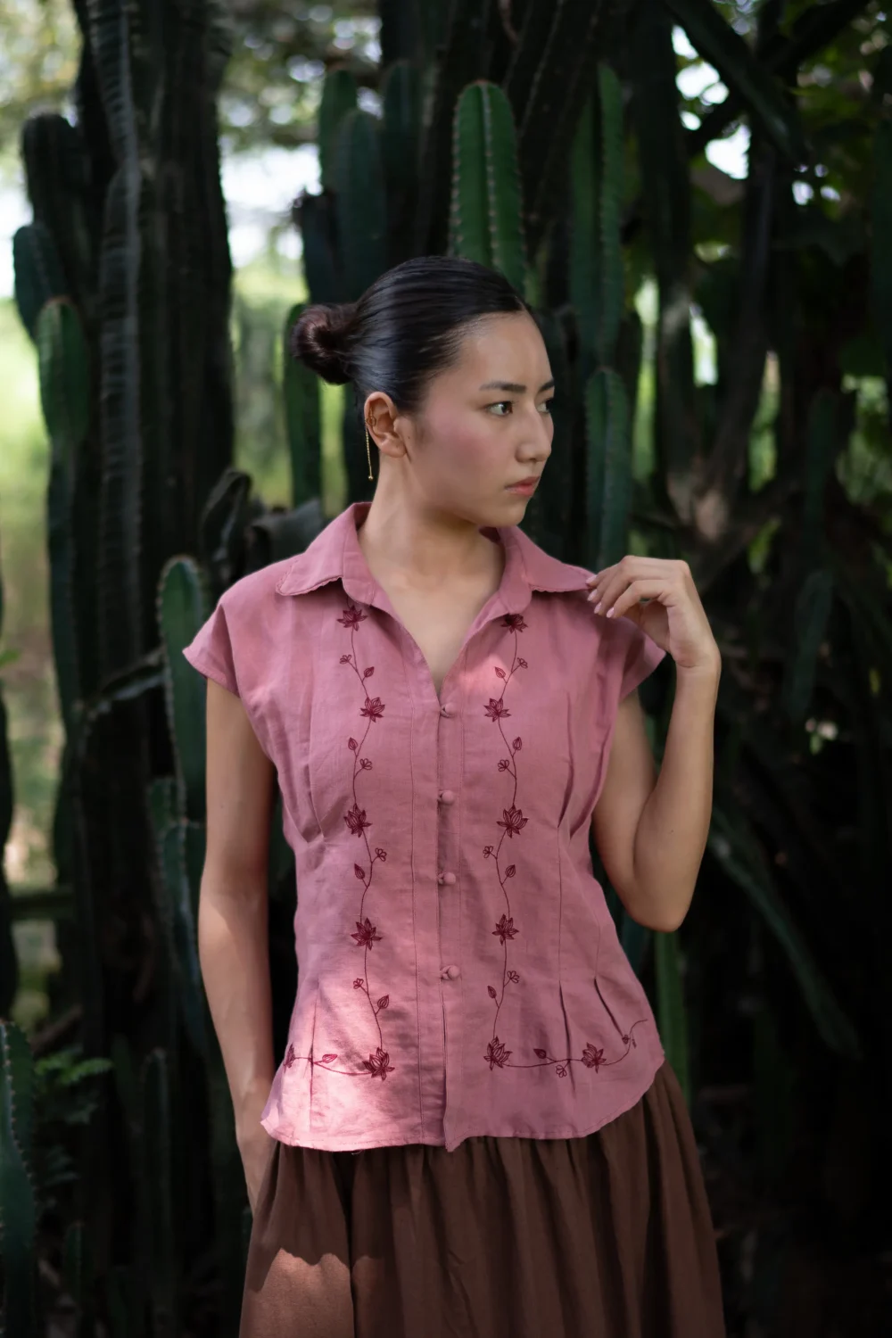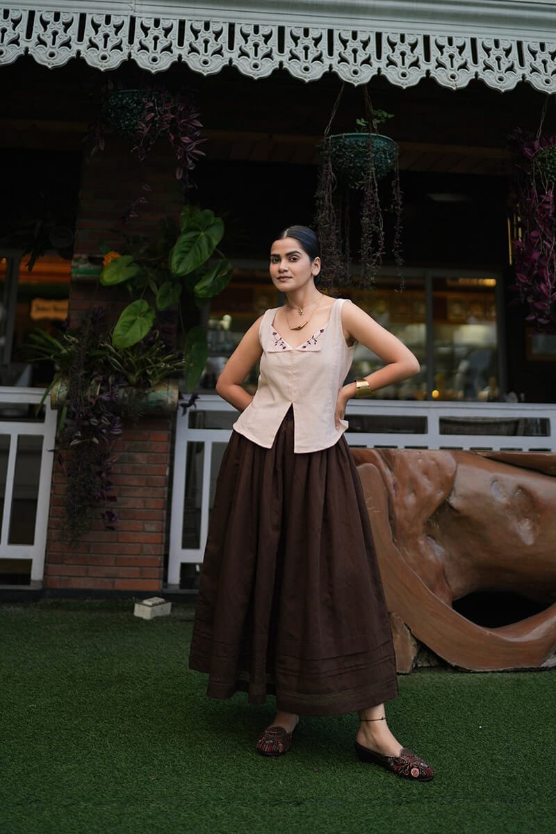 The Poem vest top is crafted from pure linen fabric and features beautiful floral hand embroidery along the neckline. This timeless piece combines elegance and artisanal detail, perfect for adding a touch of sophistication to any outfit.