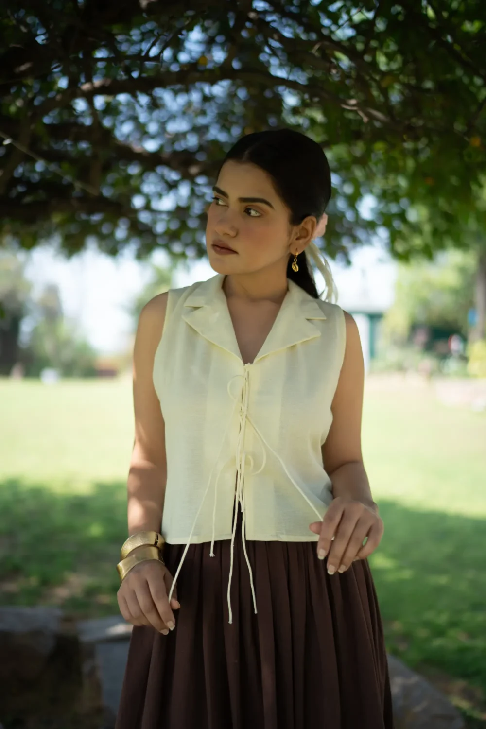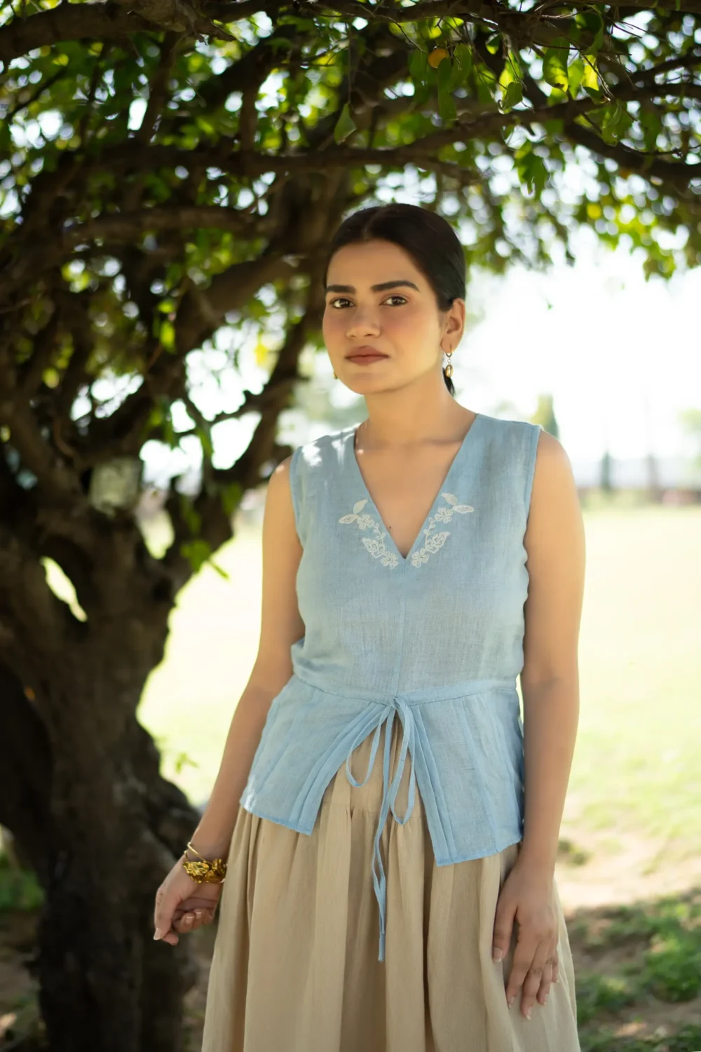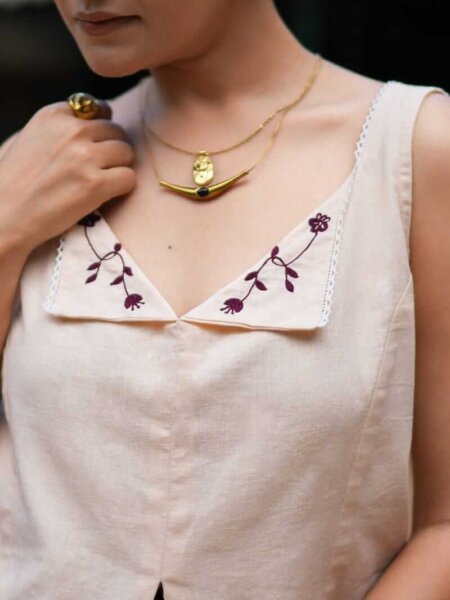 A hand embroidered linen vest top