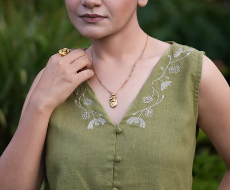 The Poem vest top is crafted from pure linen fabric and features beautiful floral hand embroidery along the neckline. This timeless piece combines elegance and artisanal detail, perfect for adding a touch of sophistication to any outfit.