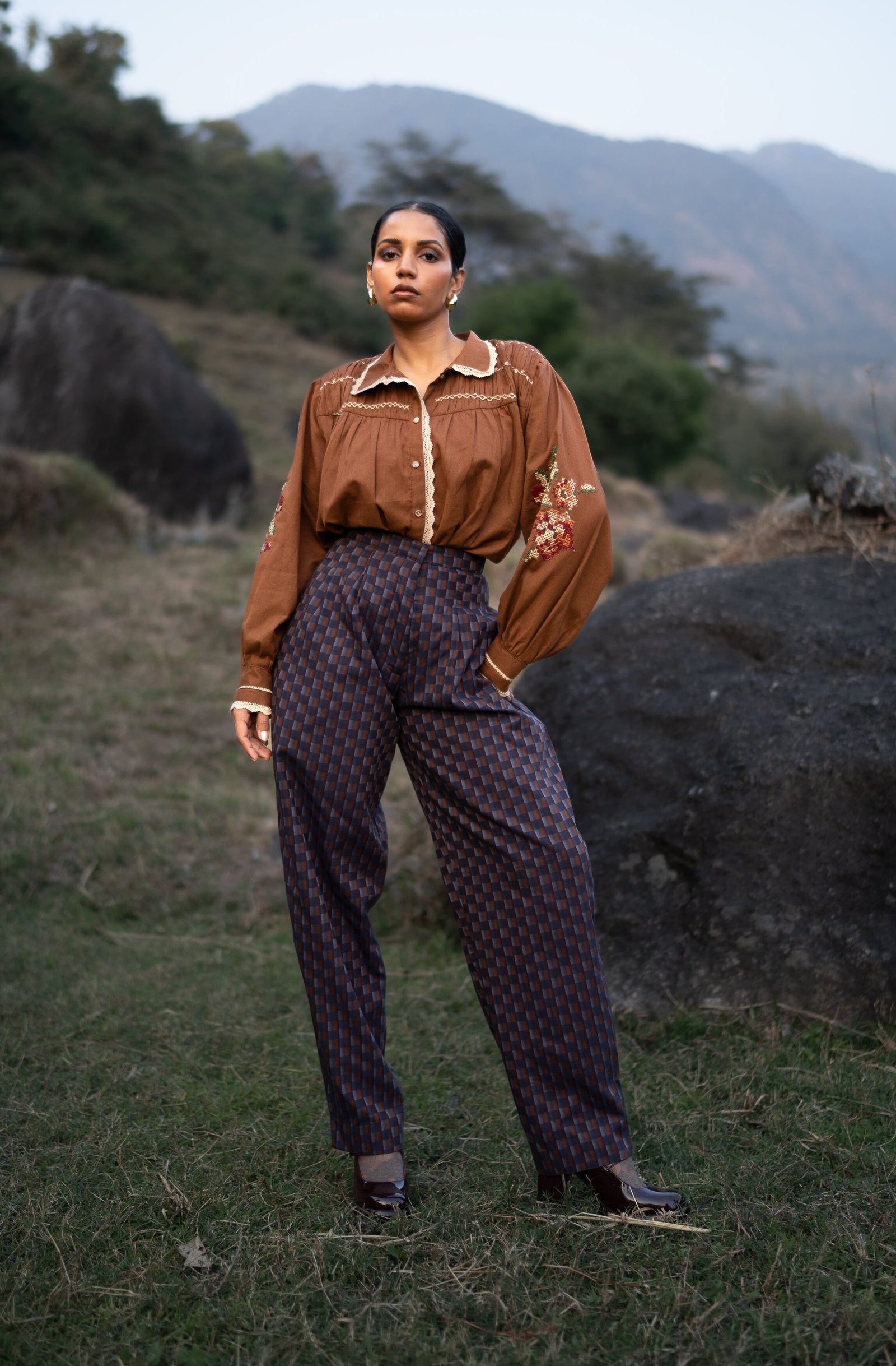 Featuring an all-over geometric print, this pant brings a bold graphic charm to a classic silhouette. The clean waistband keeps the look sleek and structured, it has side zip opening to ensure a comfortable, flexible fit that moves effortlessly with you.